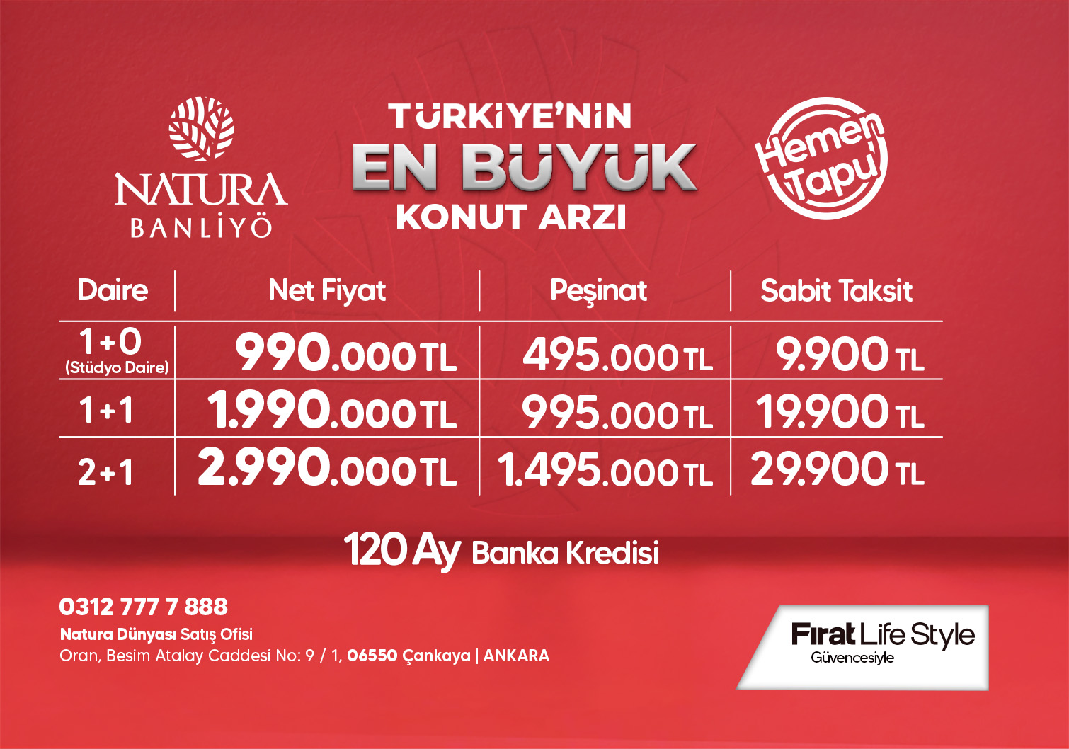 6698 sayılı Kişisel Verilerin Korunması Kanunu uyarınca, kişisel ve/veya özel nitelikli kişisel bilgileriniz sadece ilgili Kanun kapsamında izin verilen hallerde ve aşağıda açıklandığı çerçevede Fırat Life Style markamız adı altındaki şirketlerimizden Fırat Tahin ve Susam San. A.Ş., Fırat Life Yatırım İnş. A.Ş, Saab Yatırım İnş. Taah. Madencilik San. Tic. A.Ş, SF Yıldız Gayri.San. Ve Tic. A.Ş., Fırat-Rast İnşaat Ortaklığı, Forsaş Yapı İnş.Taah. Müh. Dış Tic. Paz. San. A.Ş. tarafından kaydedilecek, saklanacak, güncellenecek, mevzuatın izin verdiği durumlarda 3 kişilere açıklanabilecek veya devredilebilecek, sınıflandırılabilecek ve işbu kanunda sayılan şekillerde işlenebilecek ve kullanılabilecektir. Satış sözleşmesini imzalayarak, sözleşmenin ayrılmak bir parçası olan işbu "Gizlilik ve Güvenlik Politikasında belirtilen şartları okuyup anladığınızı kabul etmektesiniz.