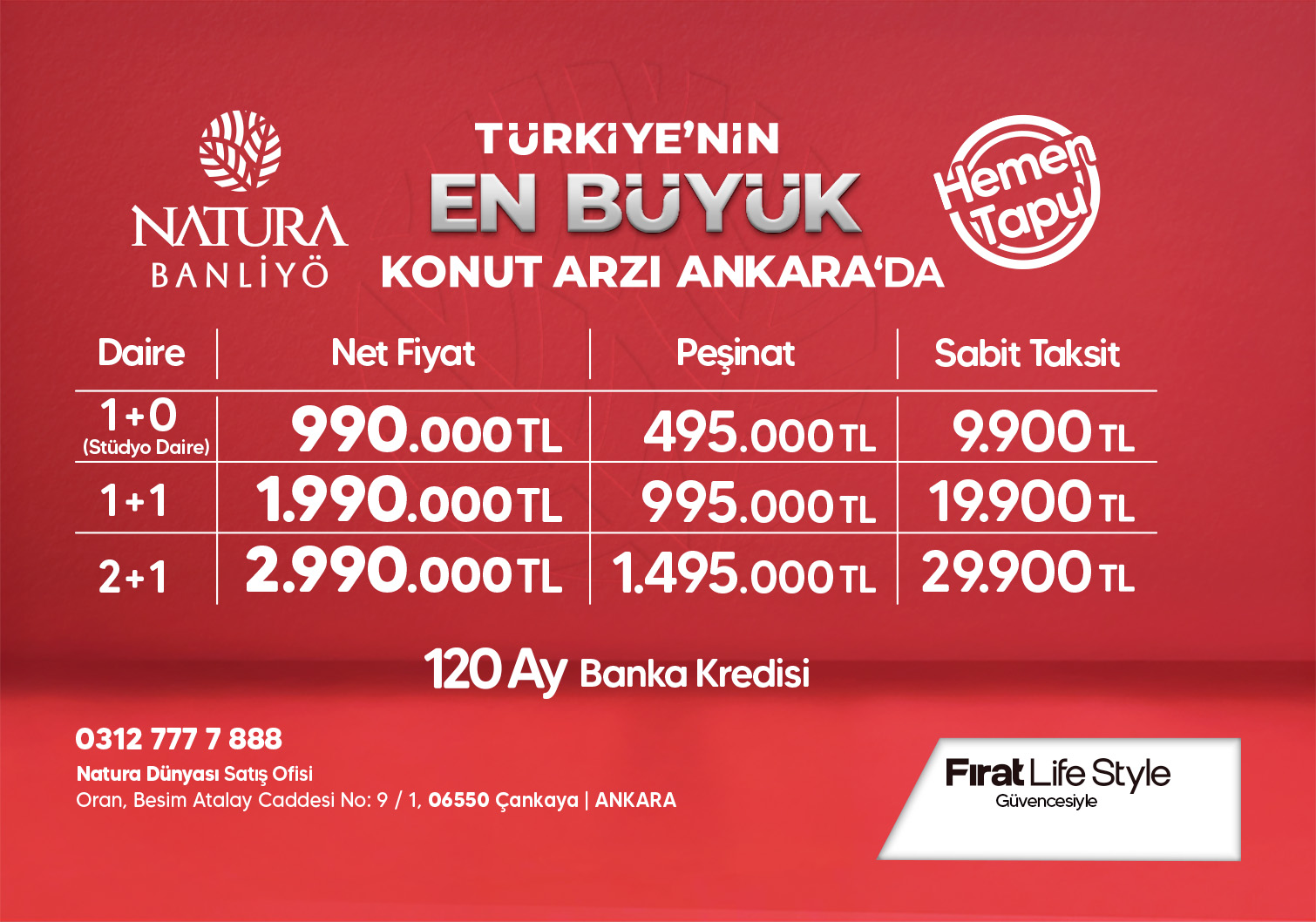 6698 sayılı Kişisel Verilerin Korunması Kanunu uyarınca, kişisel ve/veya özel nitelikli kişisel bilgileriniz sadece ilgili Kanun kapsamında izin verilen hallerde ve aşağıda açıklandığı çerçevede Fırat Life Style markamız adı altındaki şirketlerimizden Fırat Tahin ve Susam San. A.Ş., Fırat Life Yatırım İnş. A.Ş, Saab Yatırım İnş. Taah. Madencilik San. Tic. A.Ş, SF Yıldız Gayri.San. Ve Tic. A.Ş., Fırat-Rast İnşaat Ortaklığı, Forsaş Yapı İnş.Taah. Müh. Dış Tic. Paz. San. A.Ş. tarafından kaydedilecek, saklanacak, güncellenecek, mevzuatın izin verdiği durumlarda 3 kişilere açıklanabilecek veya devredilebilecek, sınıflandırılabilecek ve işbu kanunda sayılan şekillerde işlenebilecek ve kullanılabilecektir. Satış sözleşmesini imzalayarak, sözleşmenin ayrılmak bir parçası olan işbu "Gizlilik ve Güvenlik Politikasında belirtilen şartları okuyup anladığınızı kabul etmektesiniz.