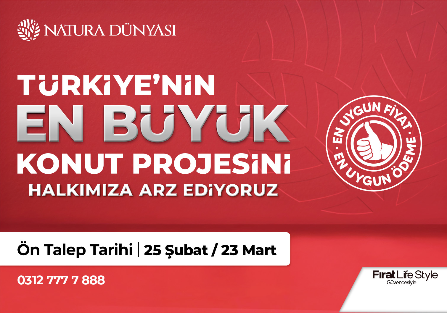 6698 sayılı Kişisel Verilerin Korunması Kanunu uyarınca, kişisel ve/veya özel nitelikli kişisel bilgileriniz sadece ilgili Kanun kapsamında izin verilen hallerde ve aşağıda açıklandığı çerçevede Fırat Life Style markamız adı altındaki şirketlerimizden Fırat Tahin ve Susam San. A.Ş., Fırat Life Yatırım İnş. A.Ş, Saab Yatırım İnş. Taah. Madencilik San. Tic. A.Ş, SF Yıldız Gayri.San. Ve Tic. A.Ş., Fırat-Rast İnşaat Ortaklığı, Forsaş Yapı İnş.Taah. Müh. Dış Tic. Paz. San. A.Ş. tarafından kaydedilecek, saklanacak, güncellenecek, mevzuatın izin verdiği durumlarda 3 kişilere açıklanabilecek veya devredilebilecek, sınıflandırılabilecek ve işbu kanunda sayılan şekillerde işlenebilecek ve kullanılabilecektir. Satış sözleşmesini imzalayarak, sözleşmenin ayrılmak bir parçası olan işbu "Gizlilik ve Güvenlik Politikasında belirtilen şartları okuyup anladığınızı kabul etmektesiniz.